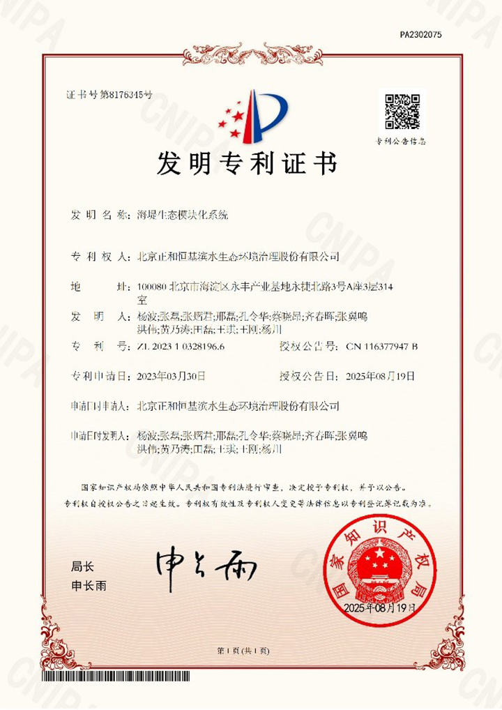 2025年7月召開的中央財經(jīng)委員會第六次會議強調(diào)“推動海洋經(jīng)濟高質(zhì)量發(fā)展”,指出“要加強海洋生態(tài)環(huán)境保護,接續(xù)實施重點海域綜合治理,積極推進海域分層立體利用,探索開展海洋碳匯核算”。近日,正和生態(tài)研發(fā)的“生態(tài)海堤模塊化系統(tǒng)”成功獲得國家發(fā)明專利授權,這一技術突破不僅體現(xiàn)了公司在海洋生態(tài)領域的創(chuàng)新能力,也為推動海洋生態(tài)與經(jīng)濟協(xié)同發(fā)展提供了重要的技術支撐。